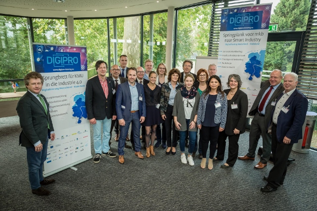 Belangrijke regionale politici, project- en associate partners kwamen bij elkaar in Kleve om het startschot te geven. Oost NL is leadpartner en werkt samen met haar partners, waaronder de Euregio Rijn-Waal, aan de digitale transformatie van producten, productieprocessen en bedrijfsmodellen van mkb’ers in de Duits-Nederlandse grensregio. Digipro is een Europees INTERREG VA project met een looptijd van vier jaar: van 2017 tot en met 2021.