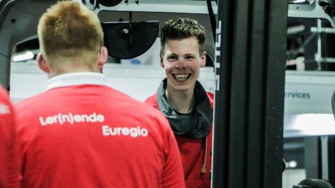 Ler(n)ende Euregio is initiatiefnemer van deze eerste ‘grensoverschrijdende’ logistiekwedstrijd. Ler(n)ende Euregio heeft vijftig leerlingen van mbo niveau 2/3 en niveau 4 uitgenodigd van ROC’s en Berufskollegs in de Euregio voor deze uitdagende wedstrijd op de logistieke vakbeurs Trans-Log-Intermodal in de beurshal van Kalkar. Centraal staat dat Duitse en Nederlandse leerlingen elkaar ontmoeten en dat ze samen hun logistieke vaardigheden verbeteren. Niveau 2/3 voert tijdens de tweedaagse zes logistieke opdrachten uit op een parcours op de beursvloer. Van een order overdragen tot het omslaan van twee munten met een heftruck. De deelnemers worden door een vakjury beoordeeld op veiligheid, precisie en tijd. De leerlingen van niveau 4 krijgen een uitdagende en gecompliceerde logistieke opdracht die ze in teams moeten uitvoeren en presenteren. Deze wedstrijd is een fantastische praktijktraining in een uitdagende setting die scholen zelf vaak niet kunnen bieden. Peter Smith, leraar Deltion College: “Dit evenement is een prachtig voorbeeld van hoe we als scholen meer kunnen laten zien hoe breed en afwisselend het logistieke beroep is. Deze wedstrijd verleidt leerlingen uit Nederland en Duitsland spelenderwijs het logistieke vak te leren kennen. Door het spel worden ze enthousiast en is taal helemaal geen drempel meer.”