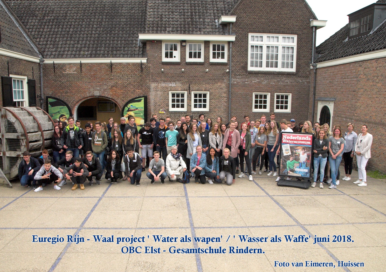 Deze scholierenactiviteit maakt deel uit van het People to People project “Water als Wapen”. Dit project houdt zich bezig met de betekenis van het rivierenlandschap in de regio Niederrhein/Nederrijn. Aan de ene kant ligt de focus op het verleden omdat tijdens de tweede wereldoorlog door het laten ontploffen van de dijken water doelgericht als wapen werd ingezet. Aan de andere kant is het hoogwatergevaar nog steeds actueel en kent geen grenzen. Activiteiten zijn o.a.: projecten met scholieren, ontmoetingen van historische verenigingen, verschillende presentaties, plaatsen van luisterkeien op historisch relevante plekken, ontwikkelen van een fietsroute enz.
