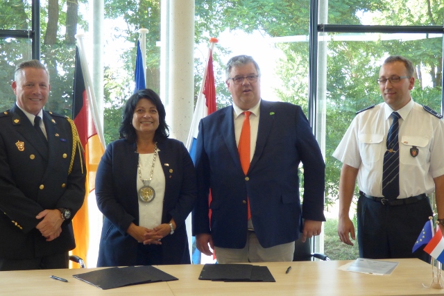 De ondertekening van de samenwerkingsovereenkomst vormt de kroon op het project “Veiligheid zonder grenzen”. In dit project werken de beide brandweerkorpsen samen aan de professionalisering en formalisering van hun samenwerking, die al ruim 46 jaar bestaat en tot nu toe de vorm van burenhulp en kameraadschap had, of zoals projectcoördinator Stefan Welberts het formuleerde: “Het heeft ons 766 dagen gekost om deze overeenkomst op te stellen en af te stemmen, maar wat zijn 766 dagen tegenover de 17.232 dagen, dat de vriendschap tussen onze korpsen bestaat?”.
