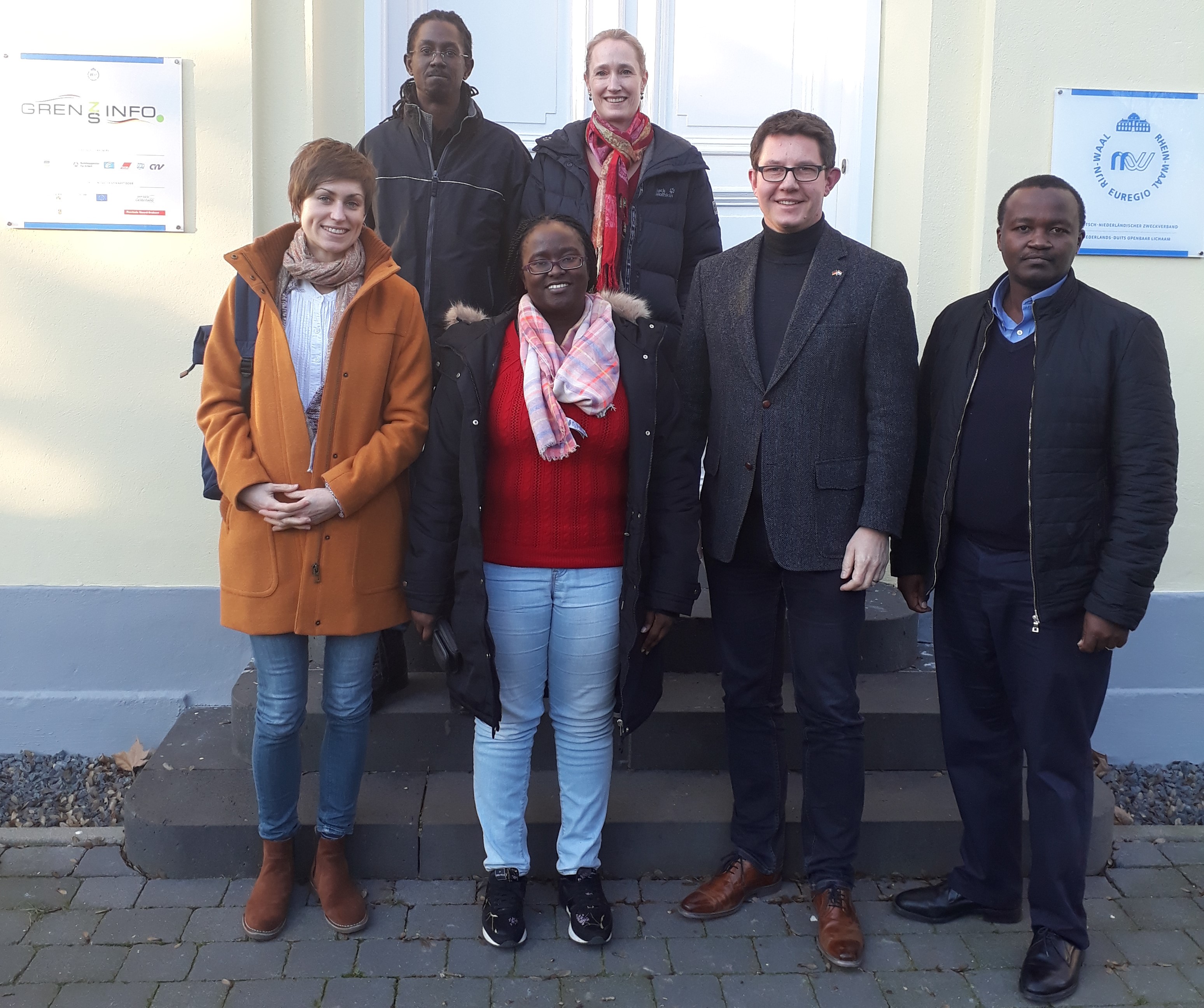 In het kader van het DAAD-project NetzwerkHAW Kenia lieten de Keniaanse gastwetenschappers Lucy Esther Kuthea Nguti, Martin Kang‘ethe Gachukia und Brian Muriithi zich op 21 januari o.a. over de werkzaamheden van de Euregio Rijn-Waal informeren.