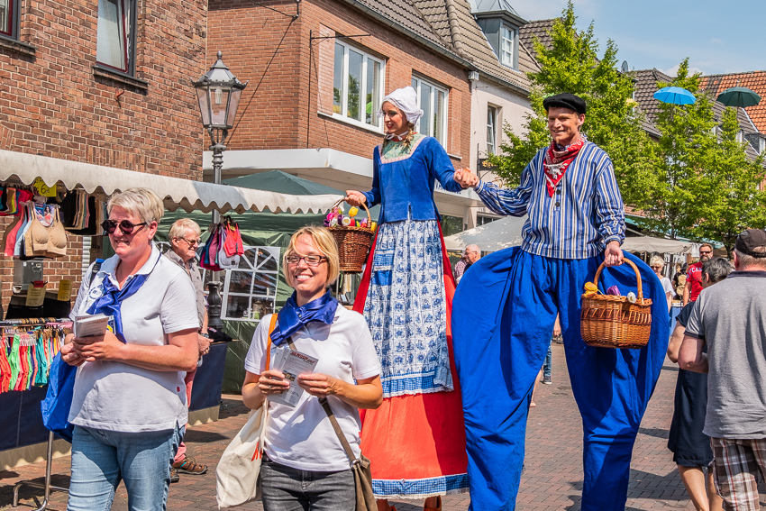 In opdracht van het GrensInfoPunt Rijn-Waal deelden de boomlange Hendricus en Bertha op de Stüppkesmarkt, het tweejaarlijkse stadsfeest in het grensplaatsje Kranenburg, flyers uit en maakten de passanten op geheel eigen wijze attent op de diensten van het GrensInfoPunt. Het boomlange duo ´aus Holland´ mocht rekenen op flink wat aandacht van het publiek dat de twee met open armen verwelkomde. De Stüppkesmarkt vond dit jaar voor de 14e keer plaats.