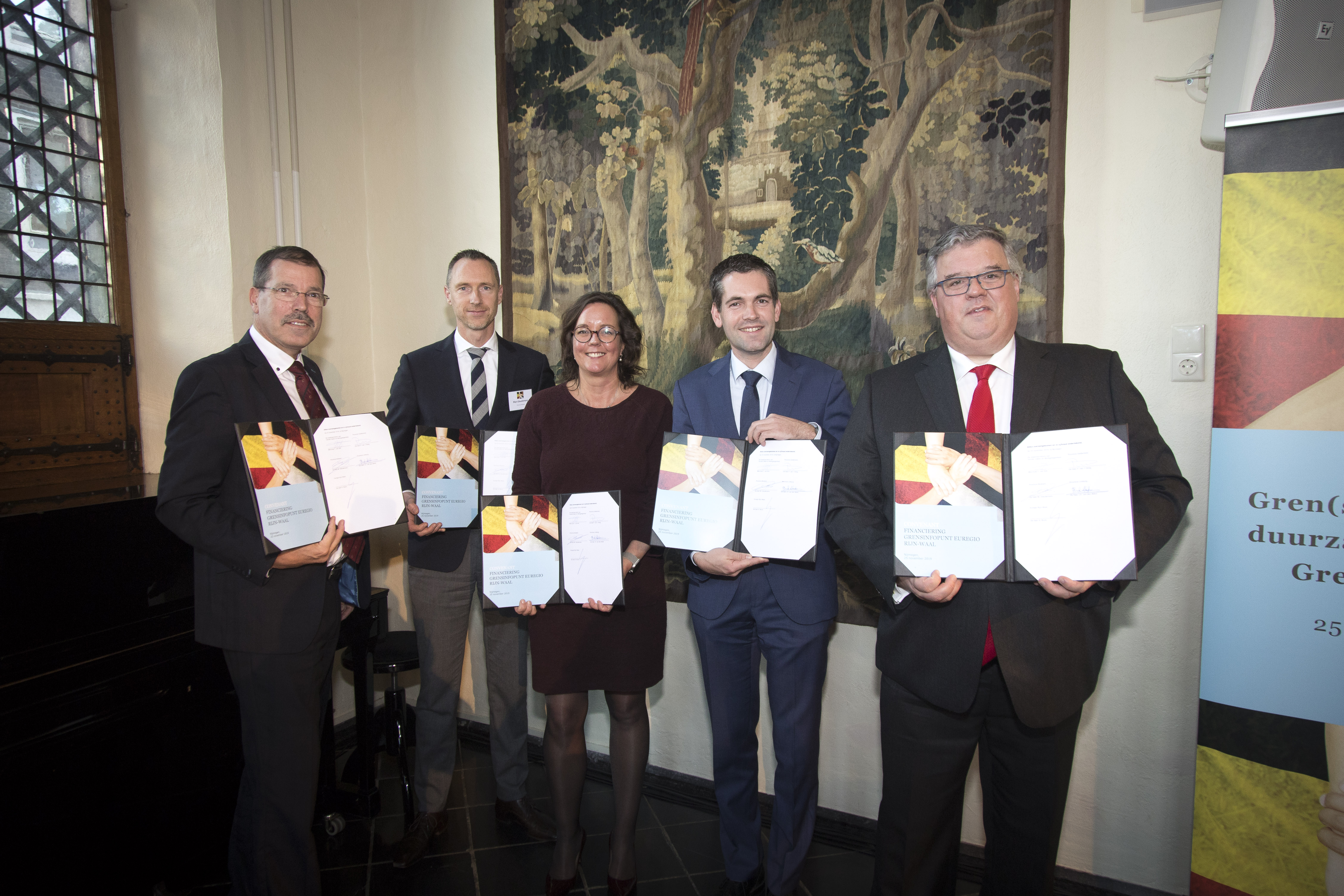 Op dit moment worden de in totaal tien adviesbureaus langs de Nederlands-Duitse en Nederlands- Belgische grens door het Europese INTERREG-programma gefinancierd. De feestelijke ondertekening was georganiseerd door het Ministerie van Sociale Zaken en Werkgelegenheid, dat een deel van de financiering op zich neemt. Ook de Nederlandse grensprovincies, de GrensInfoPunten en de Euregio’s financieren mee en hebben de overeenkomst ondertekend.