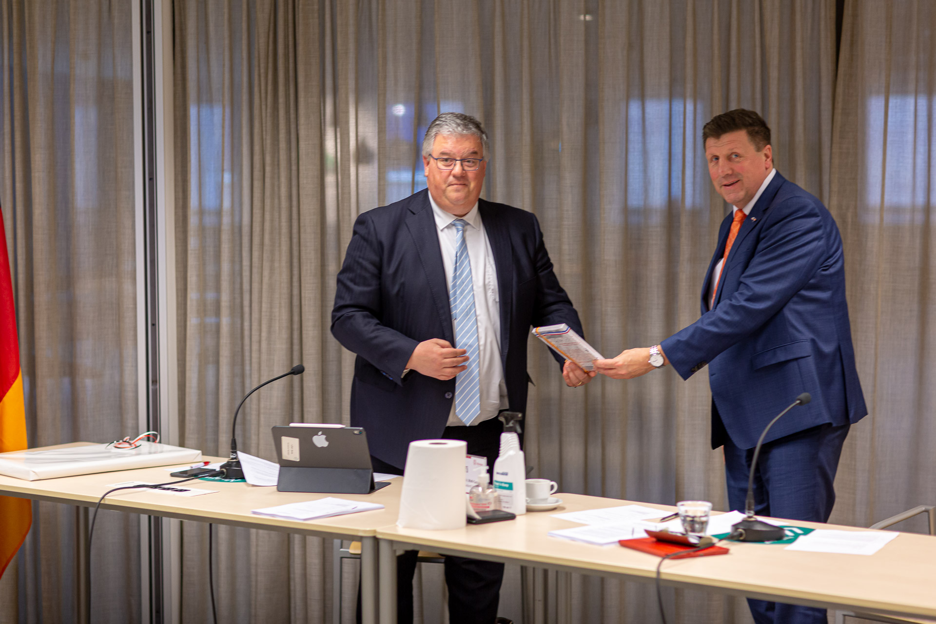 Peter Hinze, burgmeester van Emmerich is tijdens de vergadering benoemd tot nieuw lid van het Dagelijks Bestuur van de Euregio Rijn-Waal en vertegenwoordigt hierin de Kreis Kleve.