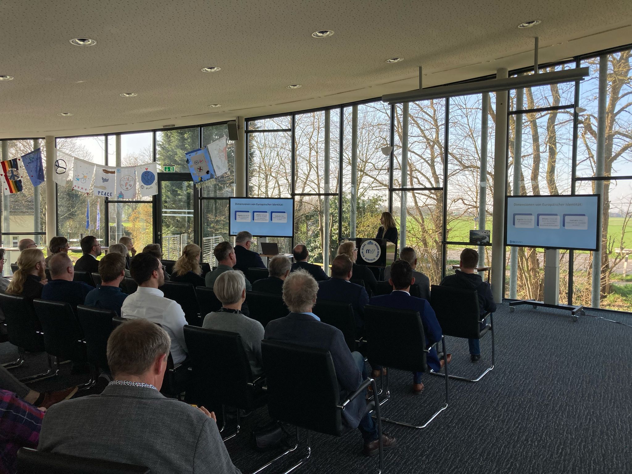Na een welkomstwoord door Euregio-Voorzitter Hubert Bruls was het woord aan prof. dr. Theresa Kuhn, hoogleraar Europese Studies aan de Universiteit van Amsterdam. Zij gaf een interessante en inspirerende lezing over hoe gemeenten kunnen bijdragen aan een Europese identiteit.